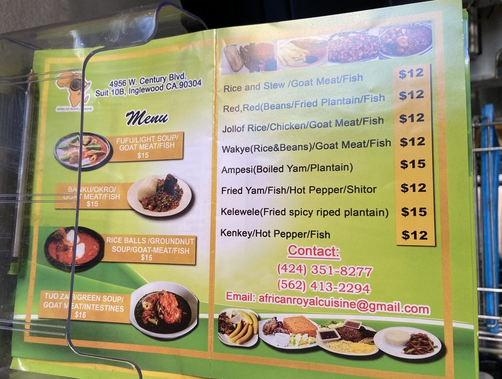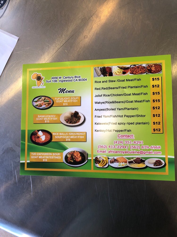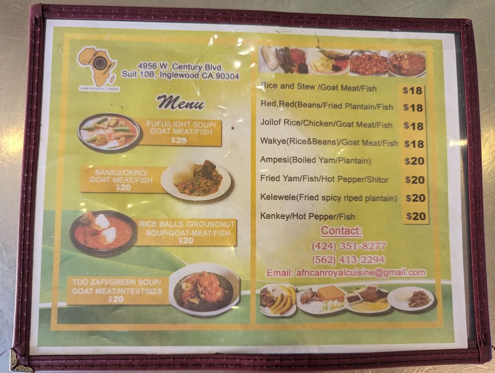 Welcome to Royal Cuisine Authentic African & American Food, where the vibrant flavors of Ghanaian and American cuisine unite in a delightful dining experience. Located at 4952 W Century Blvd, Inglewood, CA, this culinary gem has captivated locals and visitors alike with its generous portions and authentic taste.